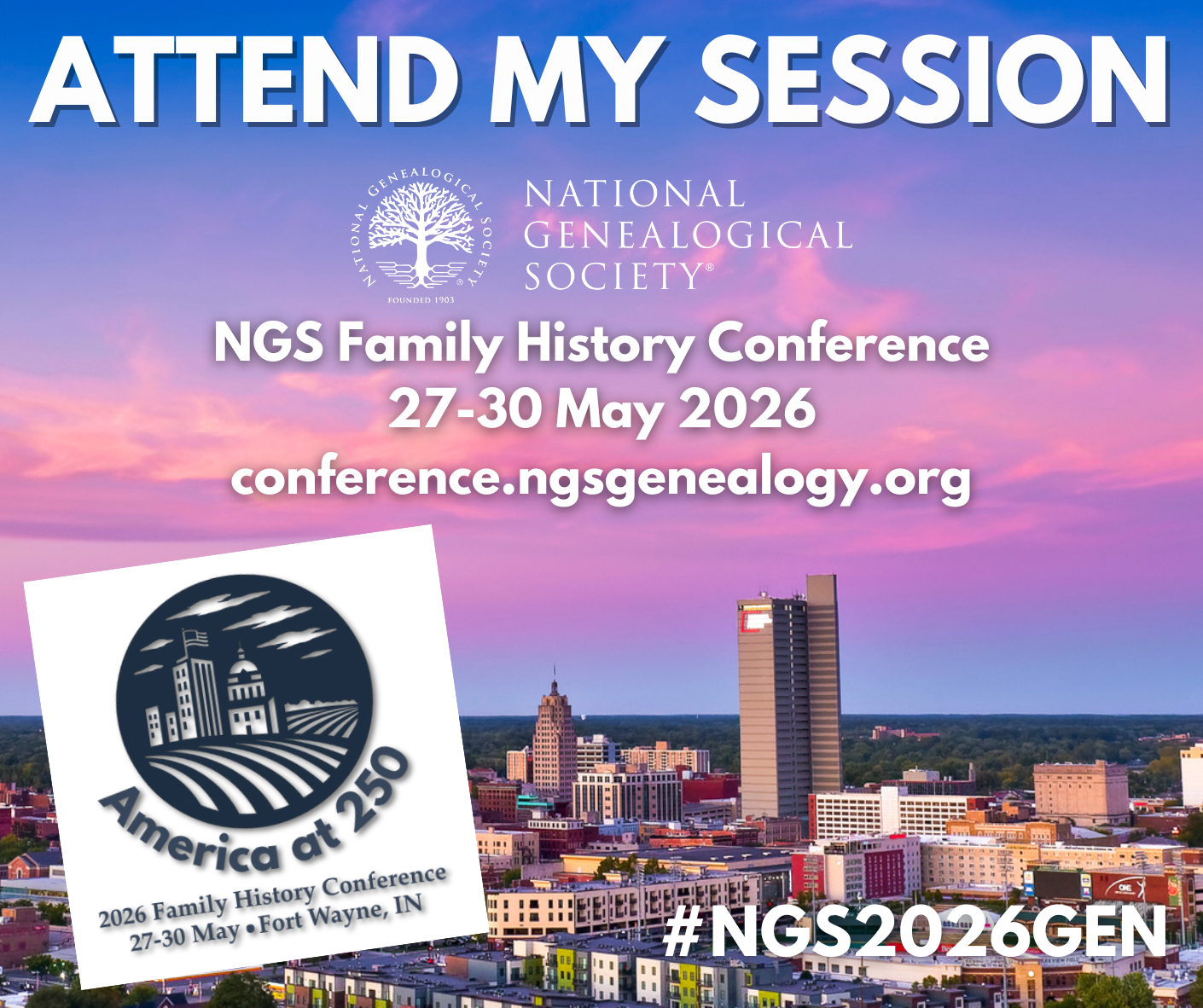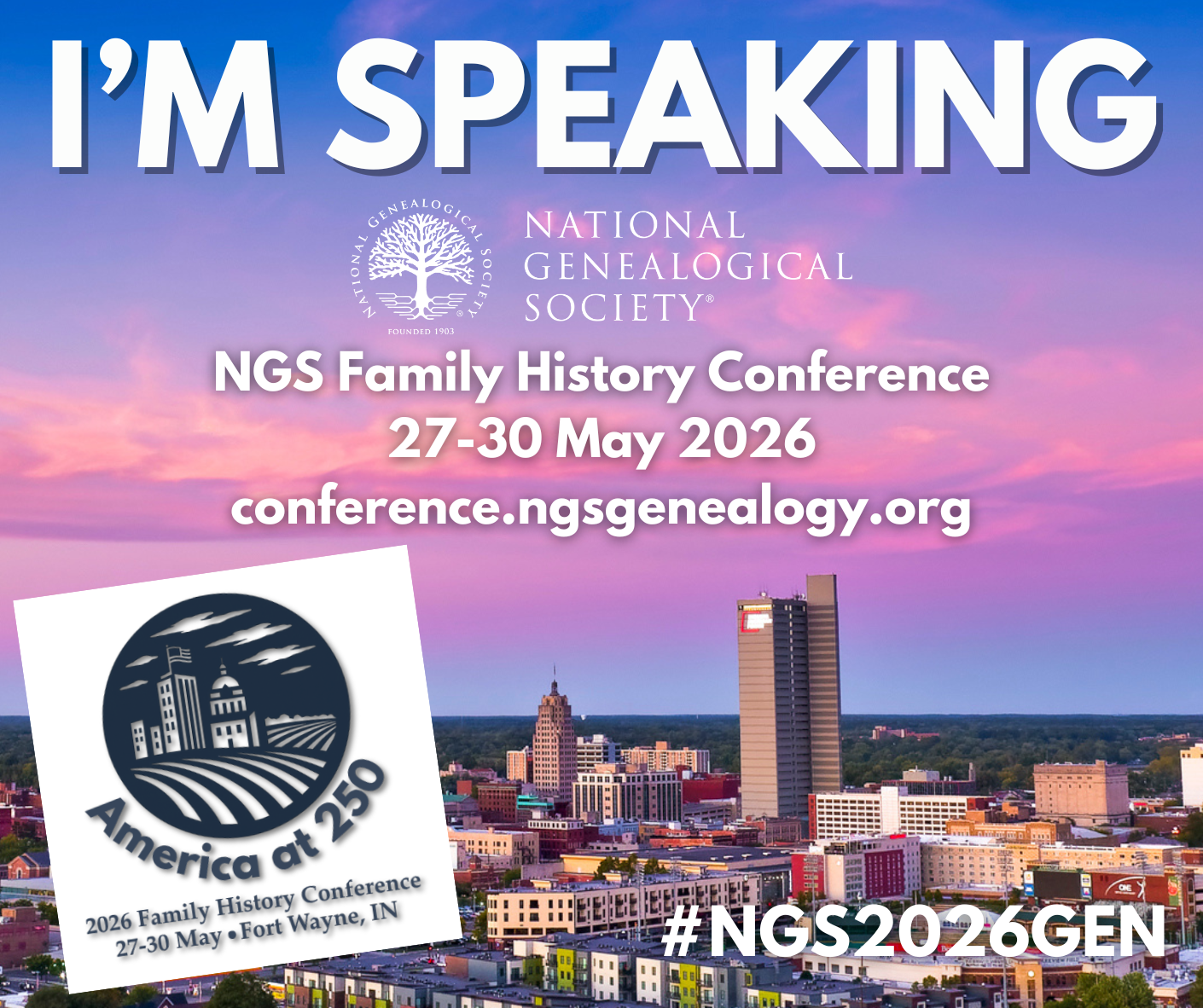 • I am excited to speak at the @ngsgenealogy #NGS2026GEN 2026 Family History Conference, from 27-30 May 2026 in Fort Wayne, Indiana.